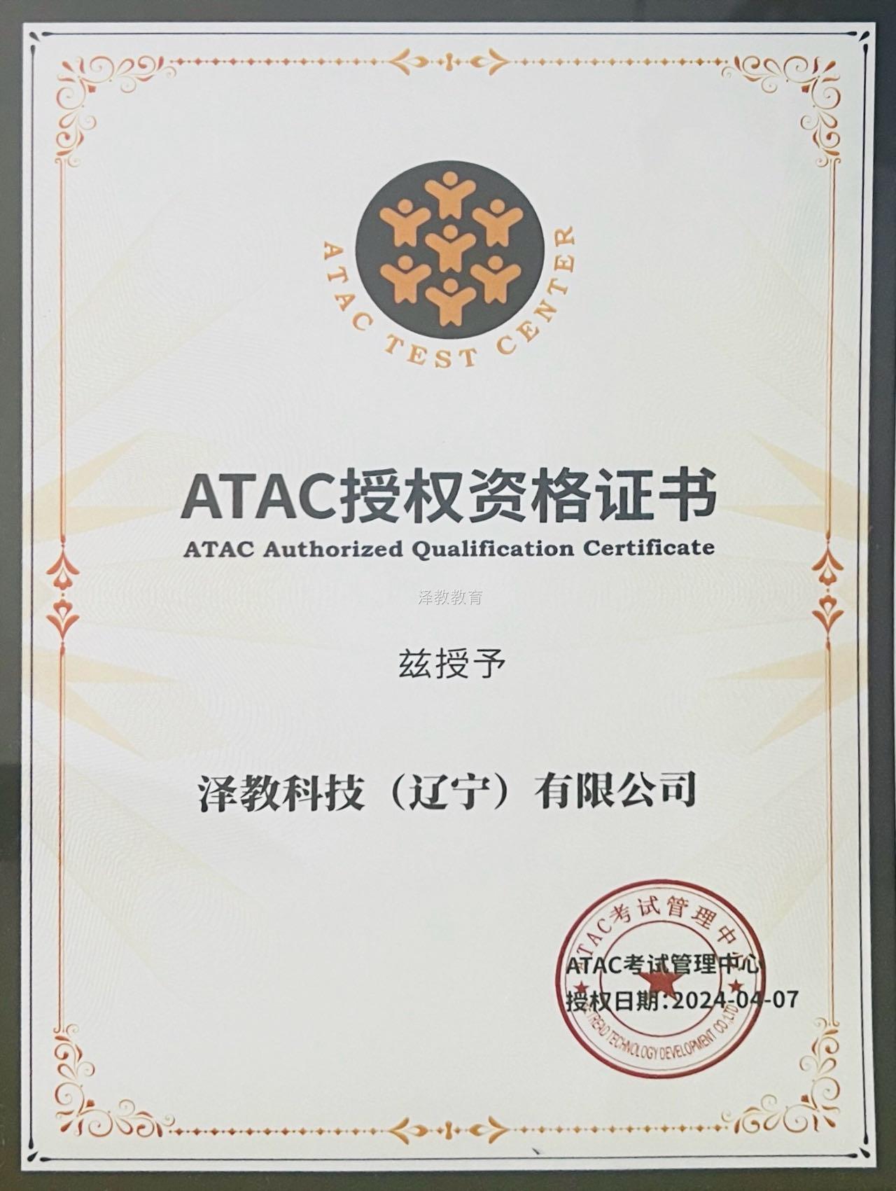 ATAC授权资格证书
